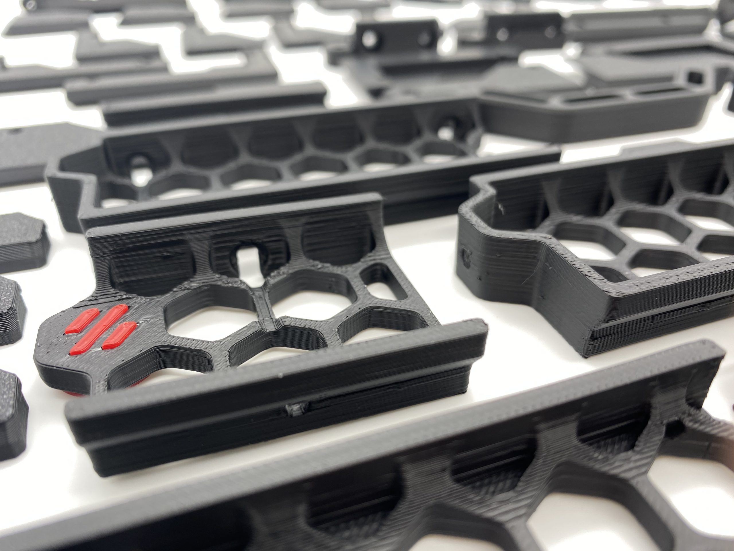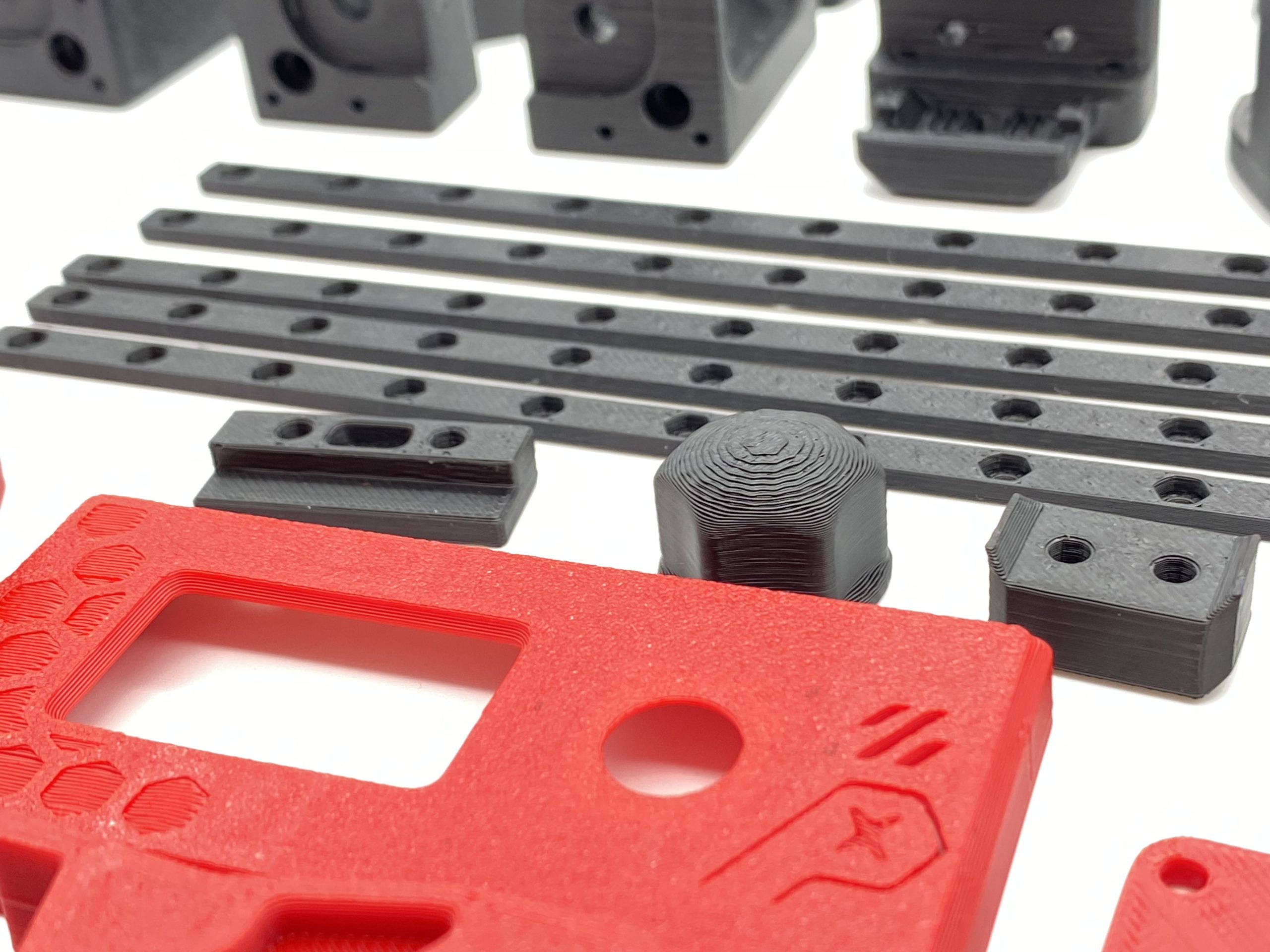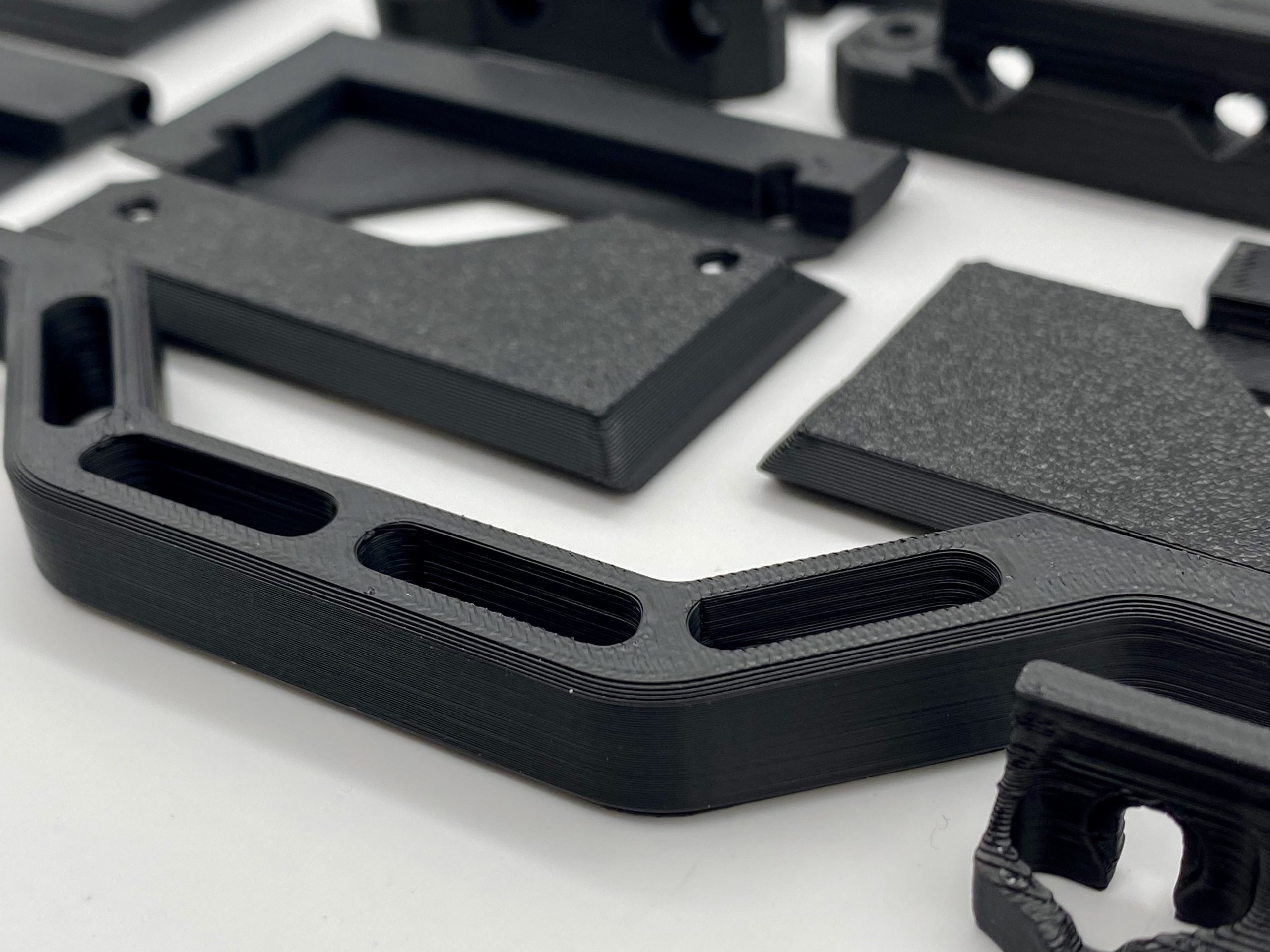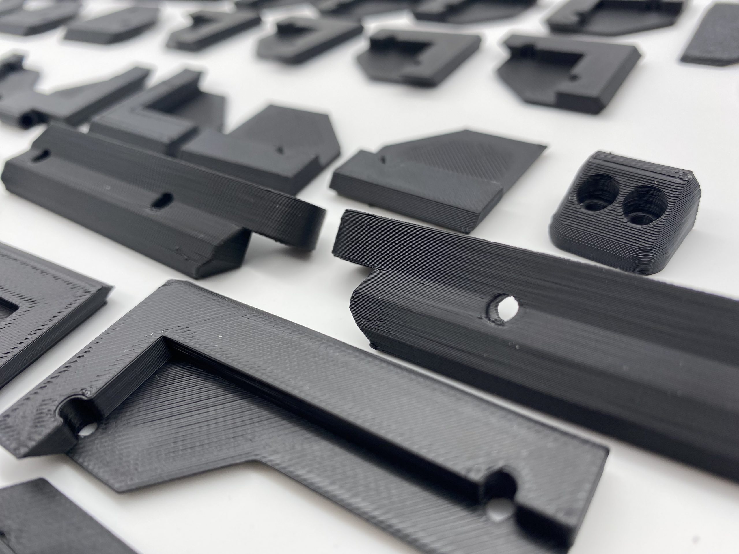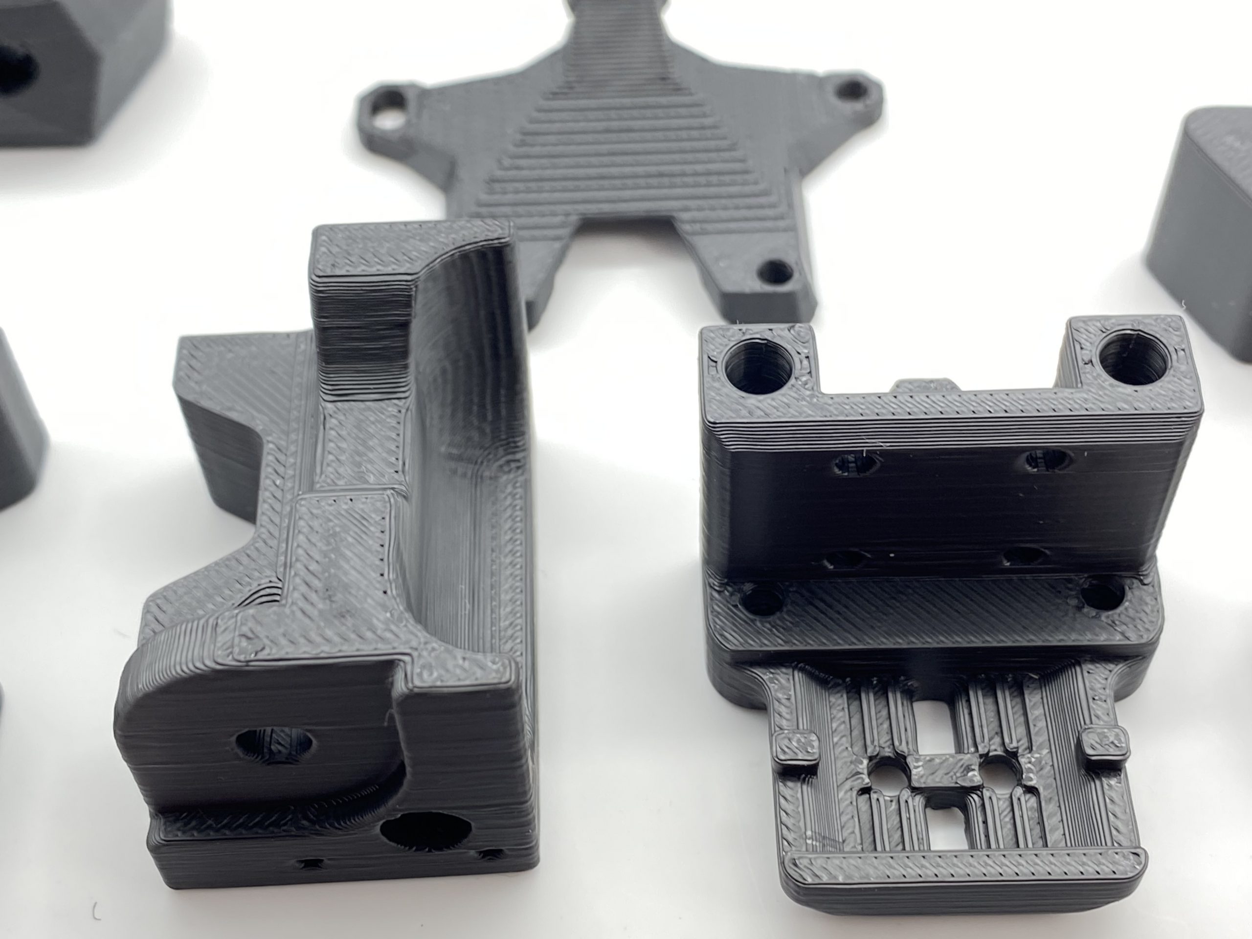 Alle Teile werden in ABS gedruckt mit 4 Perimetern, 5 Top/ Bottom Layer, min. 40% Infill und einer Layerhöhe von 0.18mm.