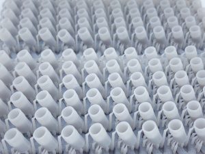 Wie beim FDM-Verfahren werden auch beim SLA-Druck Stützstrukturen verwendet, um fragile Teile beim Drucken zu stützen. Diese Strukturen werden nach der Fertigstellung des Objekts entfernt.
